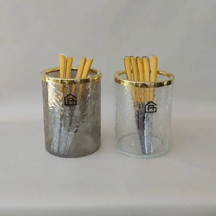 جا قاشقی مدل جدید شیشه آبگز طرح ترکدار شیشه ساده وشامپاینی بسیار زیبا وبروز دور لبه شیشه فریم نقره ای وطلایی ابکاری شده بدون تعقیر رنگ . جلو گیری از لبپر شدن ارسال به سراسر کشور با بسته بندی محکم