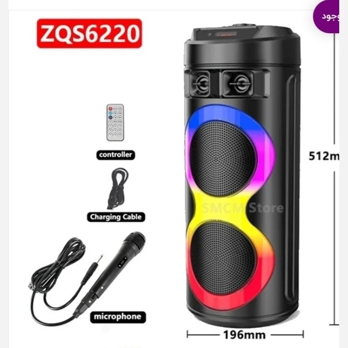 اسپیکر 6220 بیس عالی شامل میکروفن .کنترول.سیم شارژر رقص نور جذاب